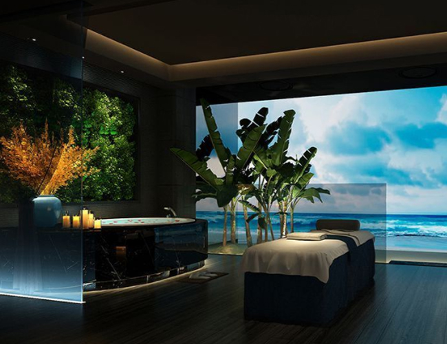 摩室布置得温馨而宁静,使用舒缓的色彩和柔和的灯光,让顾客在享受按摩服务时能够完全放松。
